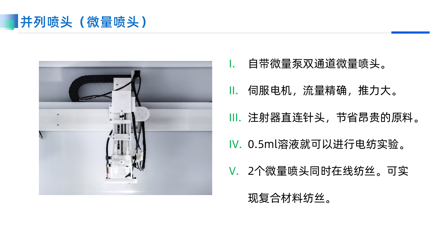 通力微納高壓靜電紡絲機TL-OMNI,ALL IN ONE EQUIPMENT,整機采用落地式設(shè)計,融合了我公司各型號實驗室設(shè)備的主要優(yōu)點,配備了我公司全系列噴頭和收絲裝置,可滿足多種實驗需求,制備不同形態(tài)和特點的納米纖維。
