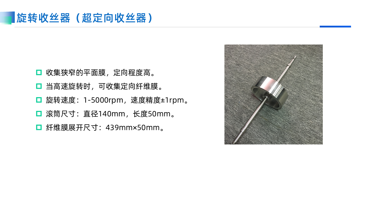 在靜電紡絲中,平行電極收絲器是實驗室用來收集定向纖維膜的主要裝置之一,平行電極收絲器收集到的纖維定向程度高。通力微納提供多種不同設計的平行電極收絲器。