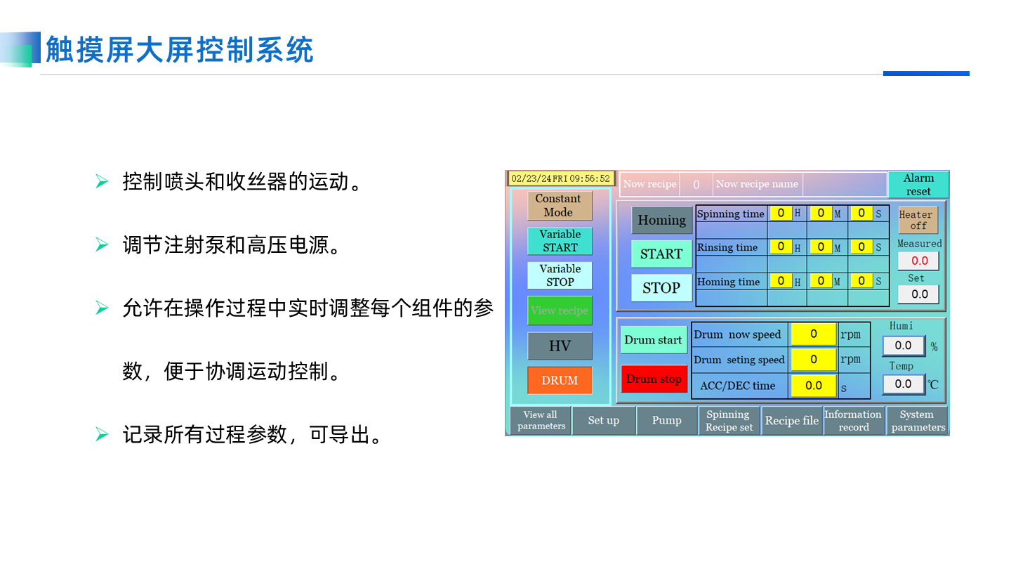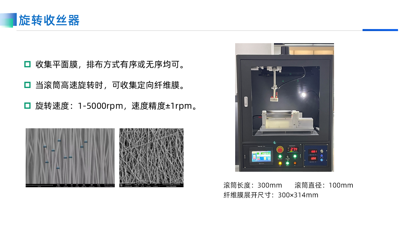 這款設備采用先進的觸摸屏控制系統和多點接地的安全系統,能夠安全可靠地操作。它適用于不同類型的溶劑體系,包括水性和有機溶劑,是制備納米纖維膜的最佳入門選擇。