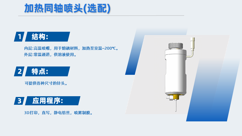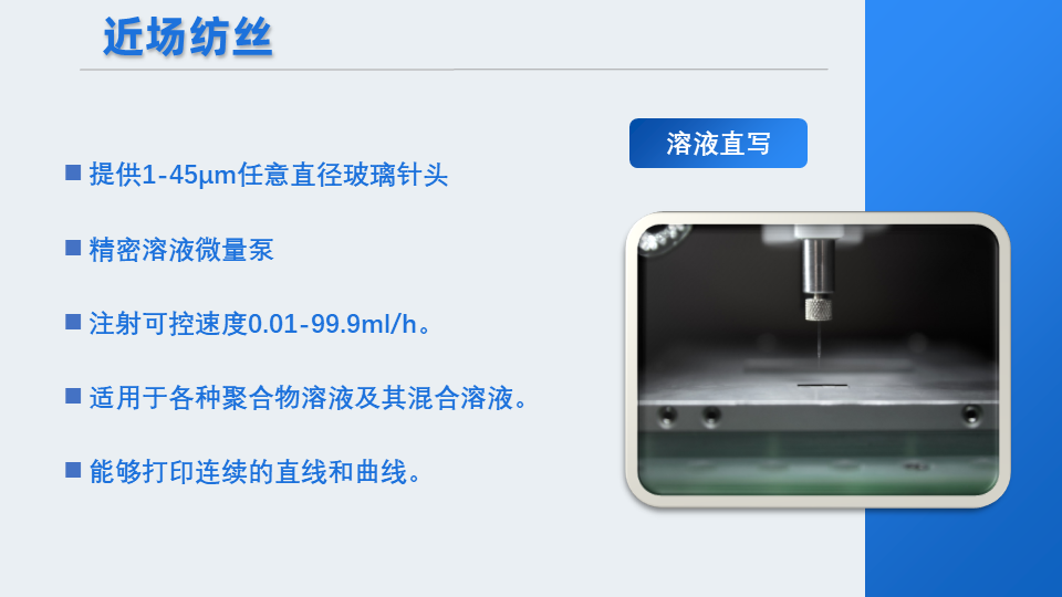 高壓靜電微納打印機,采用高壓靜電技術,結合高精度3D打印平臺,實現微米/亞微米點的噴印、微米/亞微米線結構的直寫和納米薄膜的噴涂,可以實現霧化制膜、電紡制膜,電紡直寫,以及精密微納米量子點、線的打印,從而制備預設的2D圖案和3D結構。